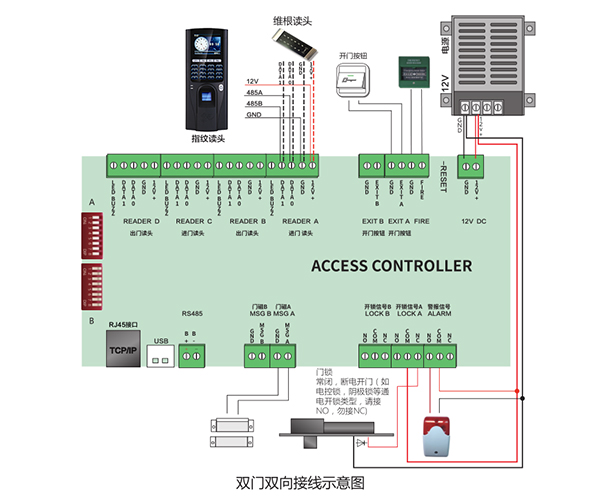 *支持WG讀頭、RS485讀頭、鎖、門(mén)磁、報(bào)警接口;